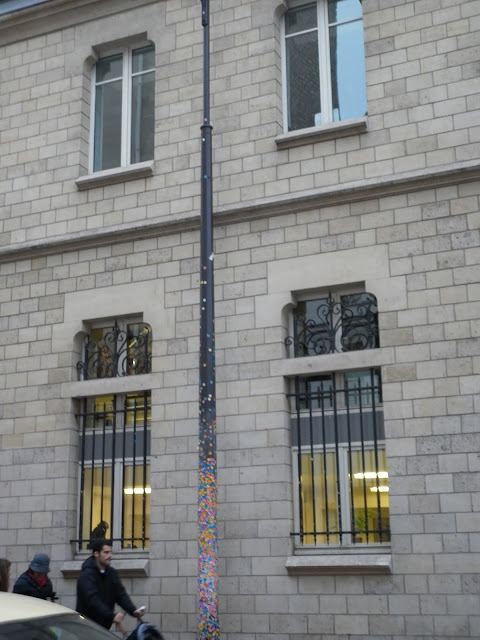 Olimme kaikki aivan jäässä Eiffel-tornista tultuamme. Ulkona tuuli todella kovaa ja Converseistani meni vesi läpi, joten sukkani olivat litimärät. Päätimme siis mennä pizzalle ja viinille. Maistoin muuten ensimmäistä kertaa Boujolais Nouveauta eli uuden sadon viiniä, joka oli ranskalaisten mielestä täyttä roskaa, mutta me tykkäsimme siitä. Viini lämmitti mukavasti.