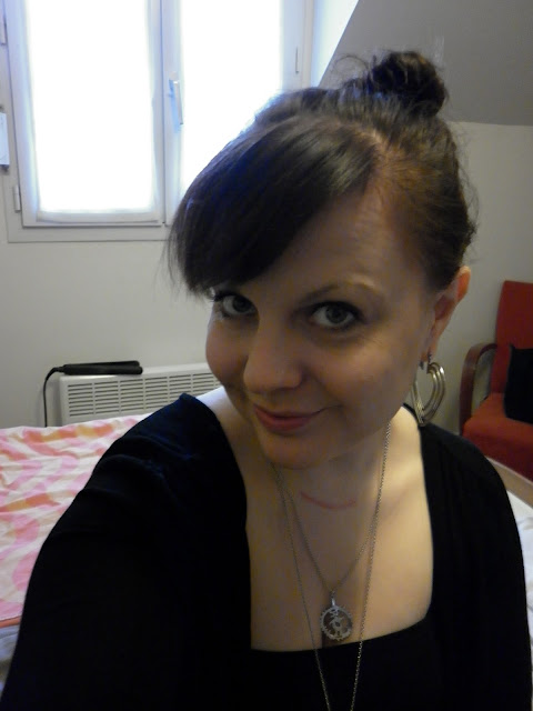 Seuraava päivä oli sunnuntai. Ilma oli vieläkin aika kylmä ja sateinen. Puin päälleni uuden untuvatakkini, koska oli niin hyytävää. Hiukseni olivat naamallani koko lauantain, joten päätin laittaa hiukseni nutturalle.