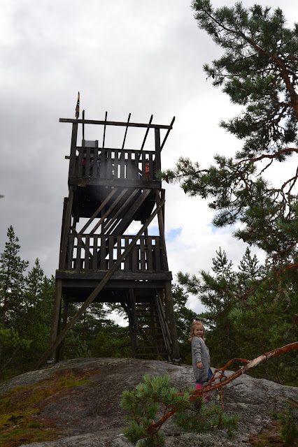 J kiipesi tyttöjen kanssa näköalatornille, kun minä jäin pikkuveljeni kanssa sateensuojaan. Näyttäisi olleen tosi kivat maisemat. Reitti oli kuitenkin kuulemma vaikea kulkea, koska puuosat ja kallio olivat todella liukkaita sateisen ilman takia.
