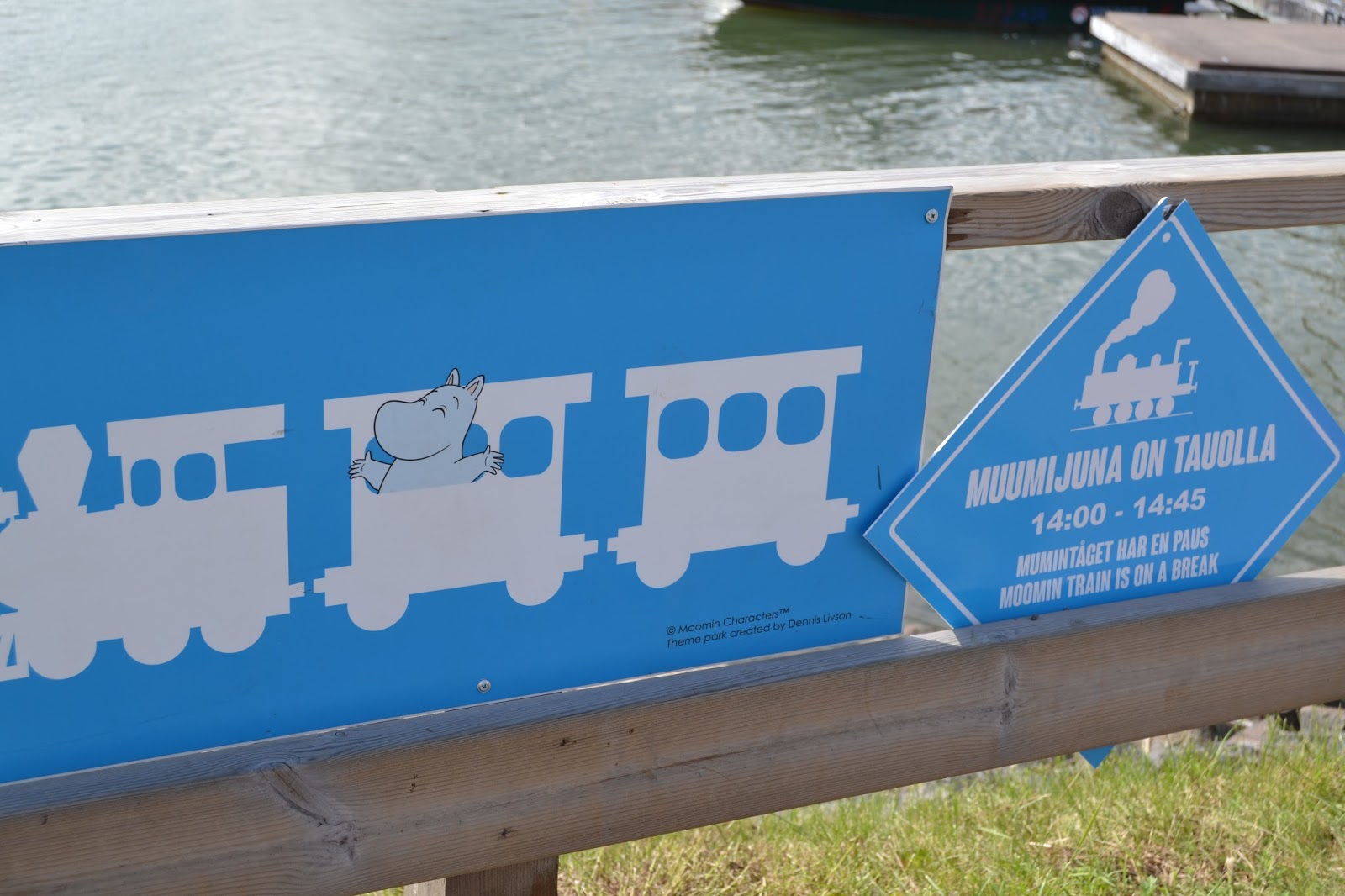 Muumijuna oli poissa käytöstä, joten emme päässeet sen kyytiin. Muumijuna kuljettaa yleensä satamasta Muumimaailmaan vievälle sillalle ja on osa elämystä.