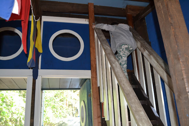 Viimeisenä käväistiin vielä Merenhuiskeessa (laivassa, jolla Muumipappa seikkailee nuorempana). Pikkuveljeäni hieman häiritsi, että laiva oli väärän värinen, koska ohjelmassahan se on keltainen eikä sininen. Laivassakin oli liukumäki. B taisi tykätä koko Muumimaailmassa eniten juurikin noista kaikista liukumäkipaikoista.