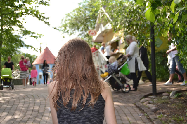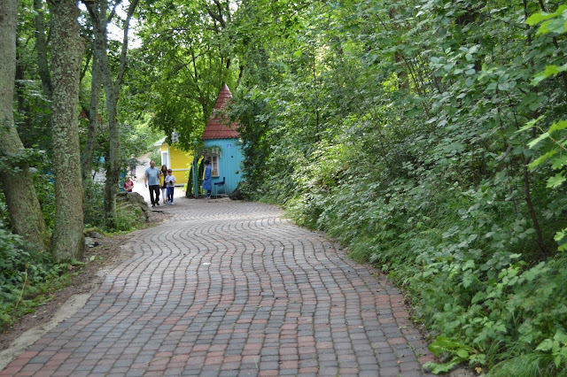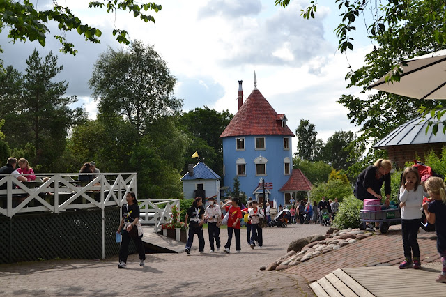 Ehdittiin ekana päivänä käydä pari tuntia Muumimaailmankin puolella. Muumimaailmahan on rakennettu saarelle, joten sinne kävellään pitkää siltaa pitkin. Ajoitus oli itseasiassa aika täydellinen, koska meitä vastaan jo tuossa sillalla käveli tosi paljon porukkaa ja koko Muumimaailma oli aika tyhjä.