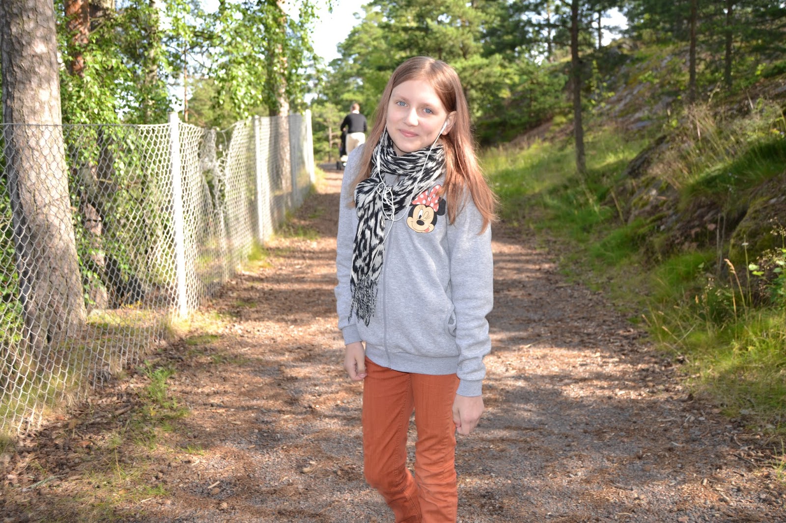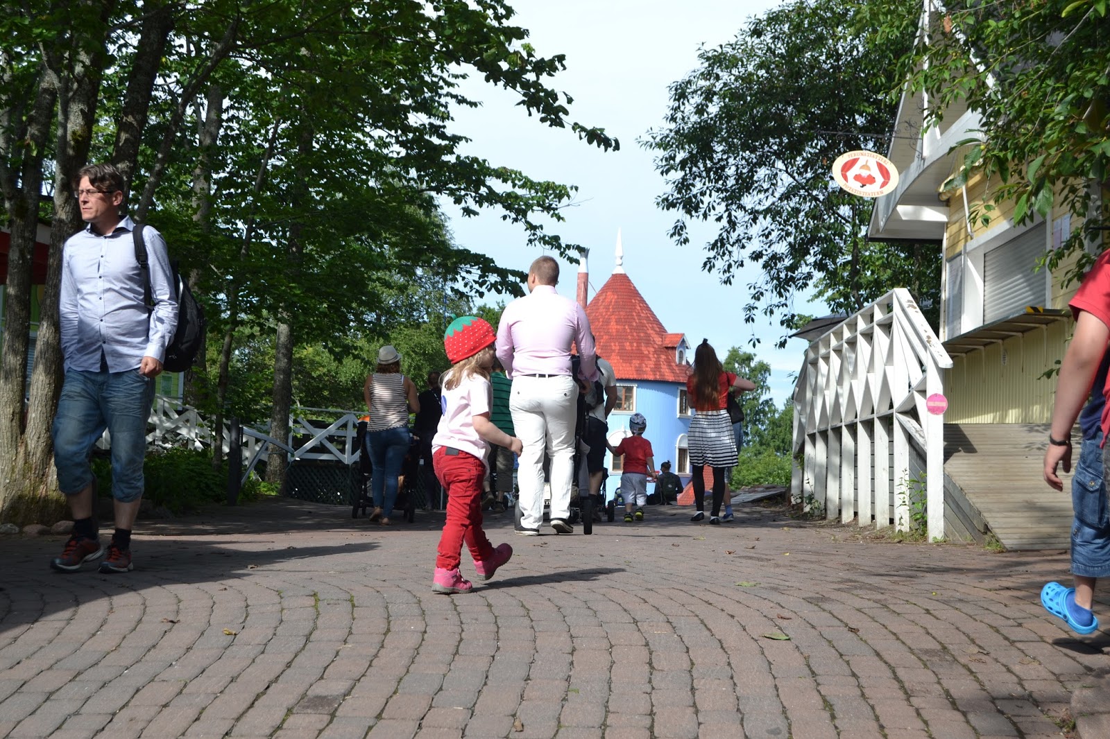 Toisena päivänä lähdettiin hyvissä ajoin matkaan. Meidän mökiltä oli parisen kilometriä Muumimaailman portille ja käveltiin taas tuo matka. Ilma oli aika viileä, mutta ei annettu sen häiritä.
