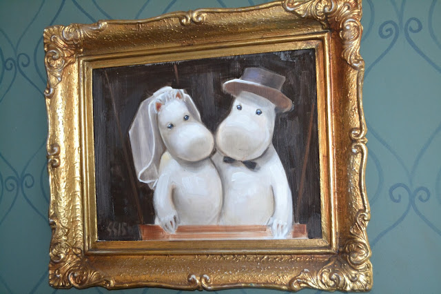 Aurinkokin pilkisti hieman pilvenraosta jo aamupäivällä ja alkoi mukavasti lämmittää. Mentiin Muumitaloon vierailulle katsomaan kuinka samanlaiselta se näyttää kuin ohjelmassa. Ja samanlainenhan se oli aina Niiskuneidin ja Pikku Myyn sänkyä myöten. Ainut mitä emme löytäneet, oli Muumipeikon huone ylimmässä kerroksessa, koska sen paikalla oli ullakko.