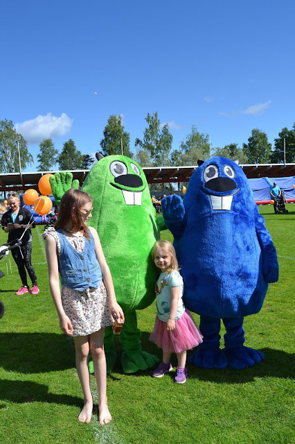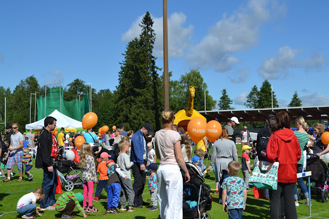 Porukkaa riitti vaikka tänä vuonna tapahtuma oli jaettu kahteen osaan. Meidän perheelle se ei oikein natsannut, että alle 5-vuotiaiden ja yli 5-vuotiaiden aktiviteetit oli jaettu eri aikoihin päivälle. Aamupäivällä oli B:n ikäisille ohjelmaa ja iltapäivällä Lissun ikäisille. Lissulla oli tylsää, koska ei saanut osallistua mihinkään eikä hän sitten halunnut lähteä iltapäivällä enää uudelleen. Hieman hankalasti järjestetty, jos minulta kysytään.