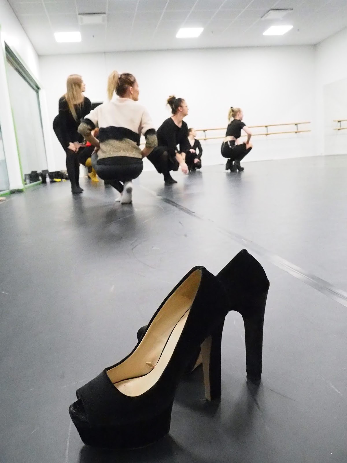 Kaikilla oli ihan huiman hauskaa ja puolet tunnista meni varmaan nauramiseen, koska no ensinnäkin piti pysyä pystyssä niillä korkkareilla kolmen vuoden tauon jälkeen ja toisekseen niillä olisi vielä pitänyt pystyä tanssimaan. Puolessa välissä tuntia minulla laittoi iskias niin pahasti vastaan, että seurasin suosiolla sivusta muiden tanssia.