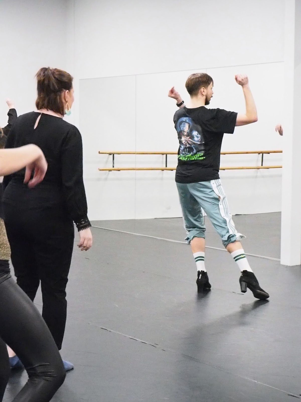 Ensimmäisenä yhteisnumerona meillä oli korkkaritanssia Pirkanmaan tanssiopiston tiloissa ihan mahtavan Manu Uimin ohjaamana. Ensi näkemältä Manu ei todellakaan näyttänyt siltä, että hän alkaa tanssimaan korkkarit jalassa. Kuitenkin kun musiikki alkoi soimaan, oli Manulla liikkeet hallussa kuin Beyoncella.