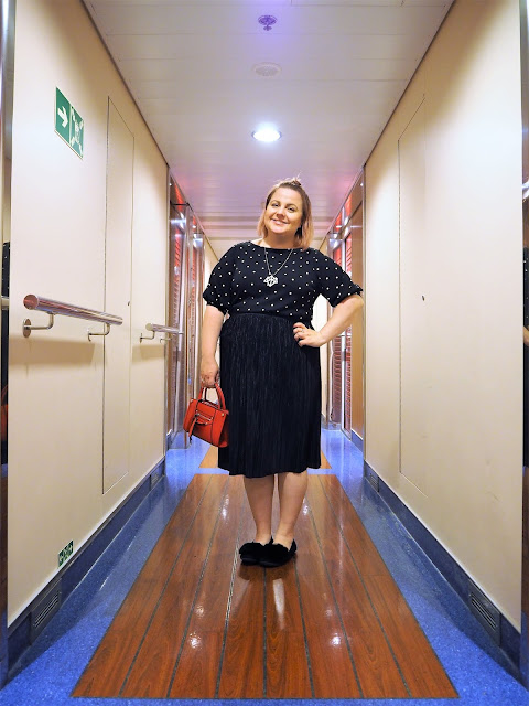 Asussa näkyvä hame on muuten minun uusi lempparini. Ostin sen Kuopion Vero Moda-liikkeestä syksyllä, kun olin etsimässä itselleni jotain vaatetta hautajaisiin. Hame on niin helppo yhdistää t-paitaan, neuleeseen tai vaikka kauluspaitaan. Värinsä ja kevyen materiaalinsa ansiosta se on helppo yhdistellä ja käyttää. Ja mikä parasta, se ei vie matkalaukussa tilaa oikein ollenkaan.