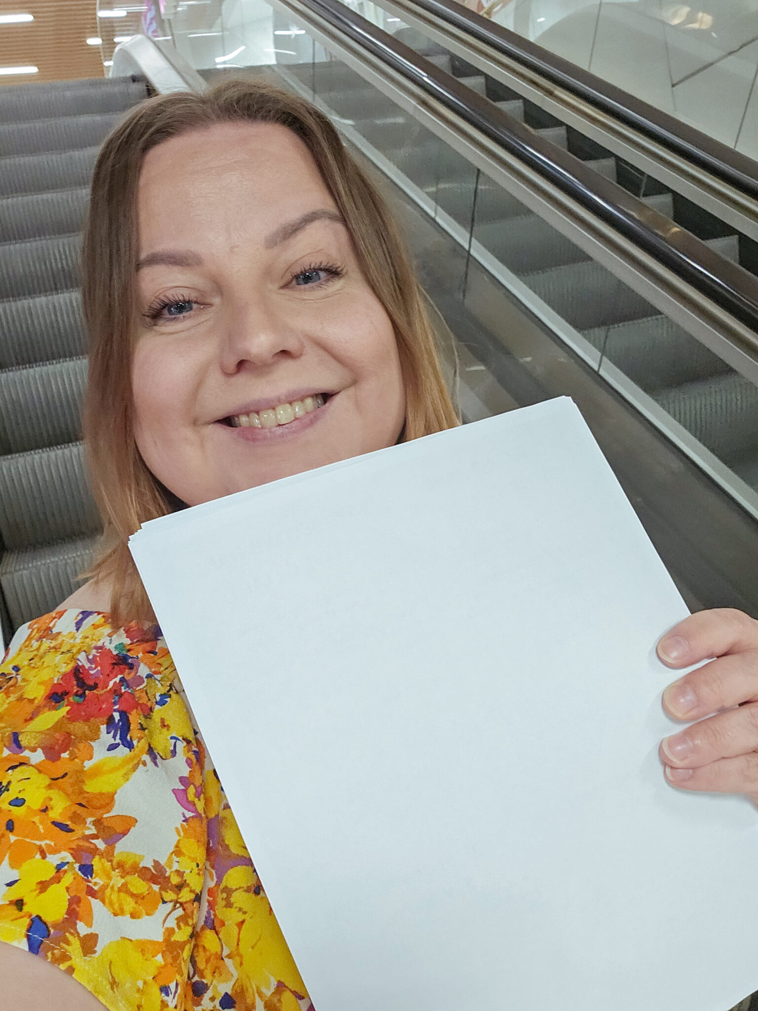 ihastelin koulutarvikkeita suomalaisessa kirjakaupassa