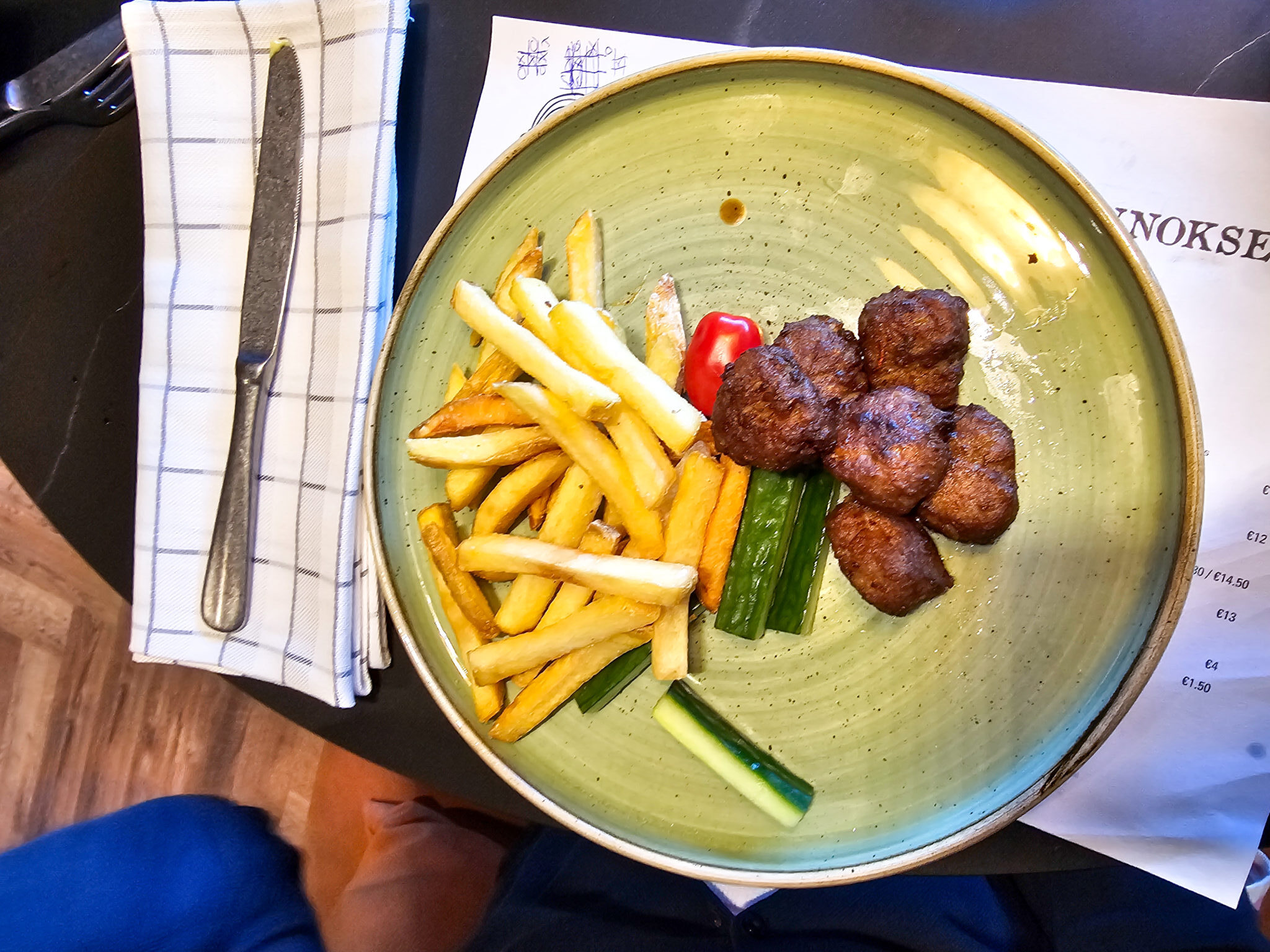 Pääruoaksi 7-vuotias tilasi lasten lihapullat, joihin hän oli todella tyytyväinen. 7-vuotias tykkää todella paljon kalasta, mutta jotenkin aina ravintolassa hän menee sillä turvallisimmalla vaihtoehdolla eli usein lihapullilla. Täytyy yrittää ohjata häntä maistelemaan vähän erikoisempiakin ruokia ravintolassa tästä eteenpäin, koska usein hän yllättyy itsekin huomatessaan jonkin olevan hyvää.