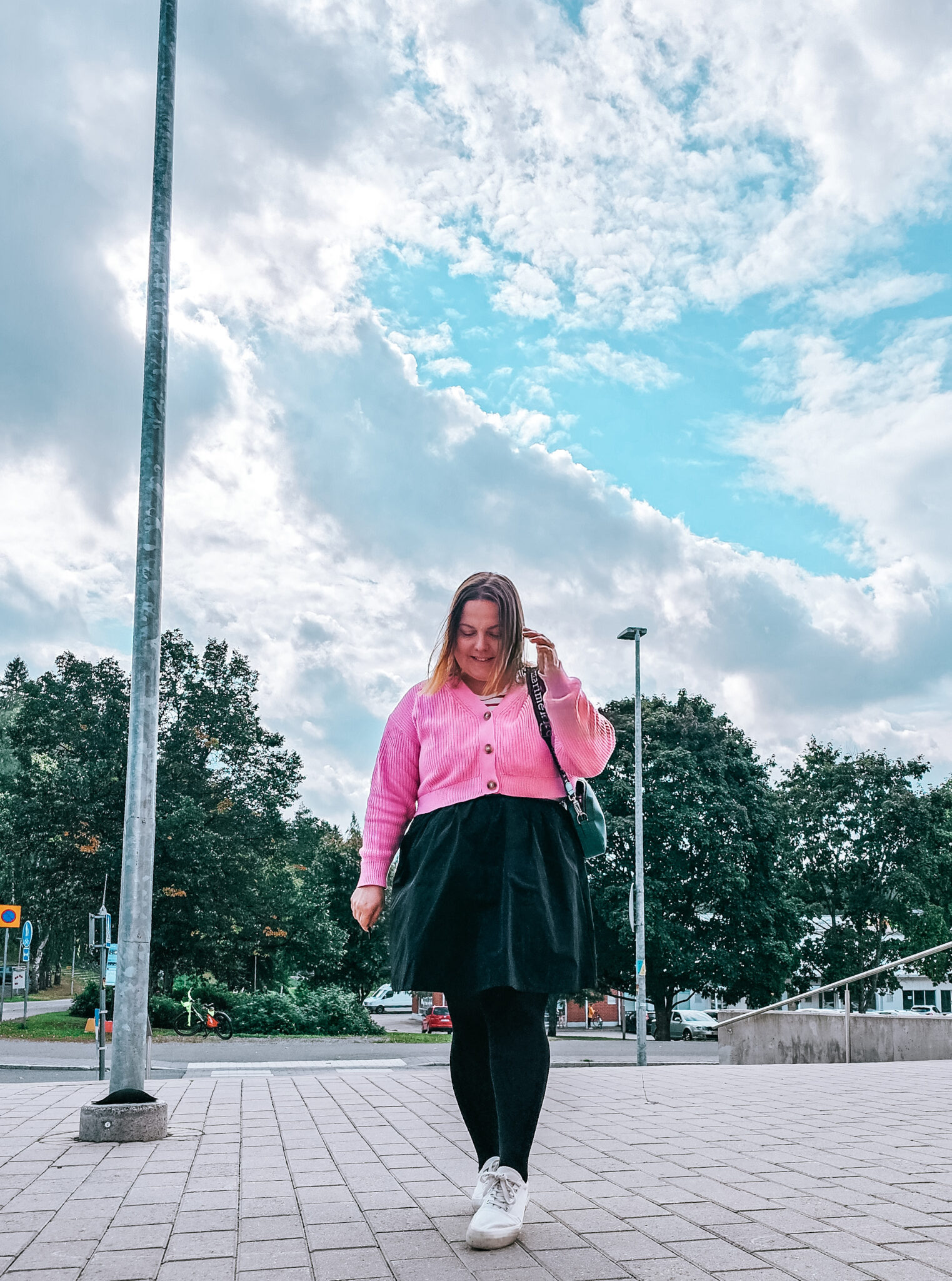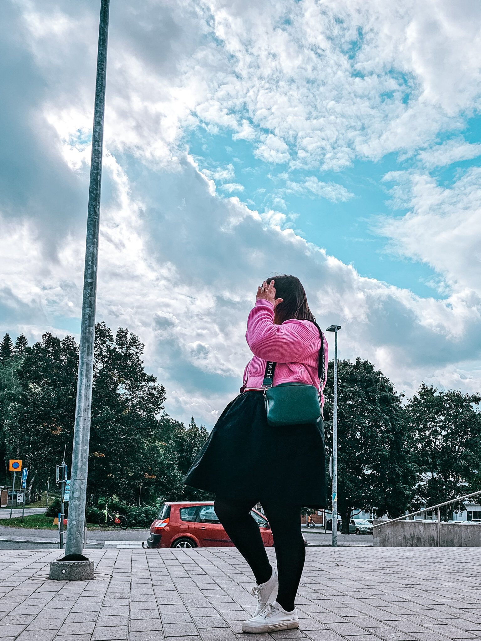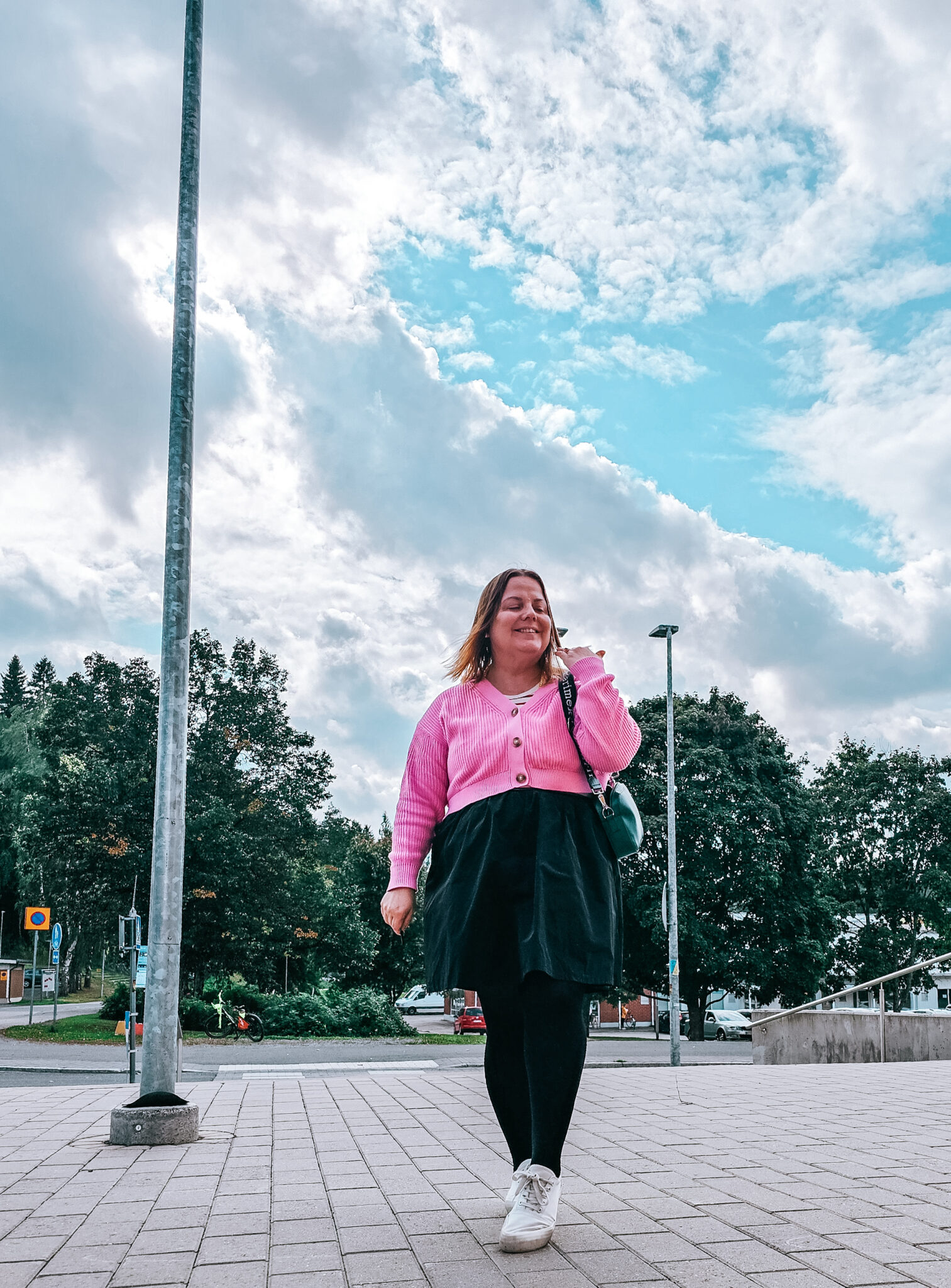 Tällä viikolla ilma tosiaan tuntui jo syksyiseltä ja laitoin ekaa kertaa sukkahousut jalkaan! Ne oli just passelit tuohon keliin, kun täällä Kuopiossa lämpötila oli kyllä vielä 15-20 asteen paikkeilla, mutta ulkona tuuli koko ajan kylmästi.