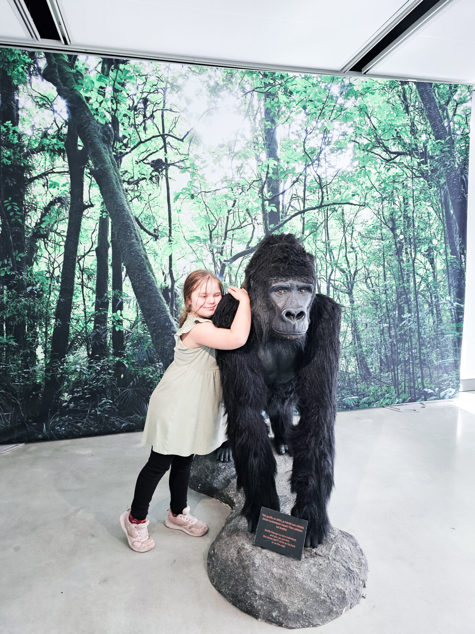 Käytiin vielä lähtiessä halailemassa gorillaa, joka oli museon aulassa sitä varten.