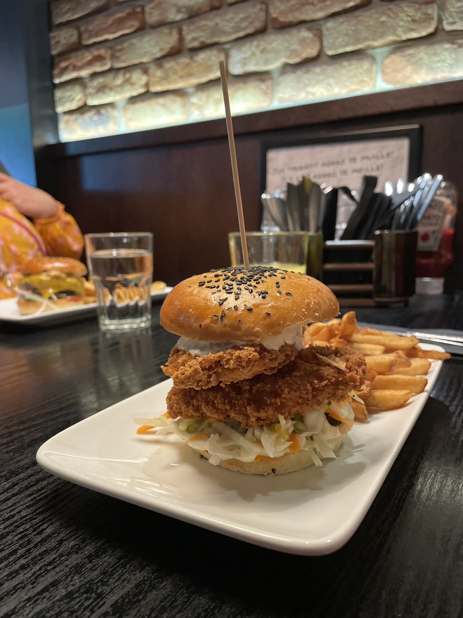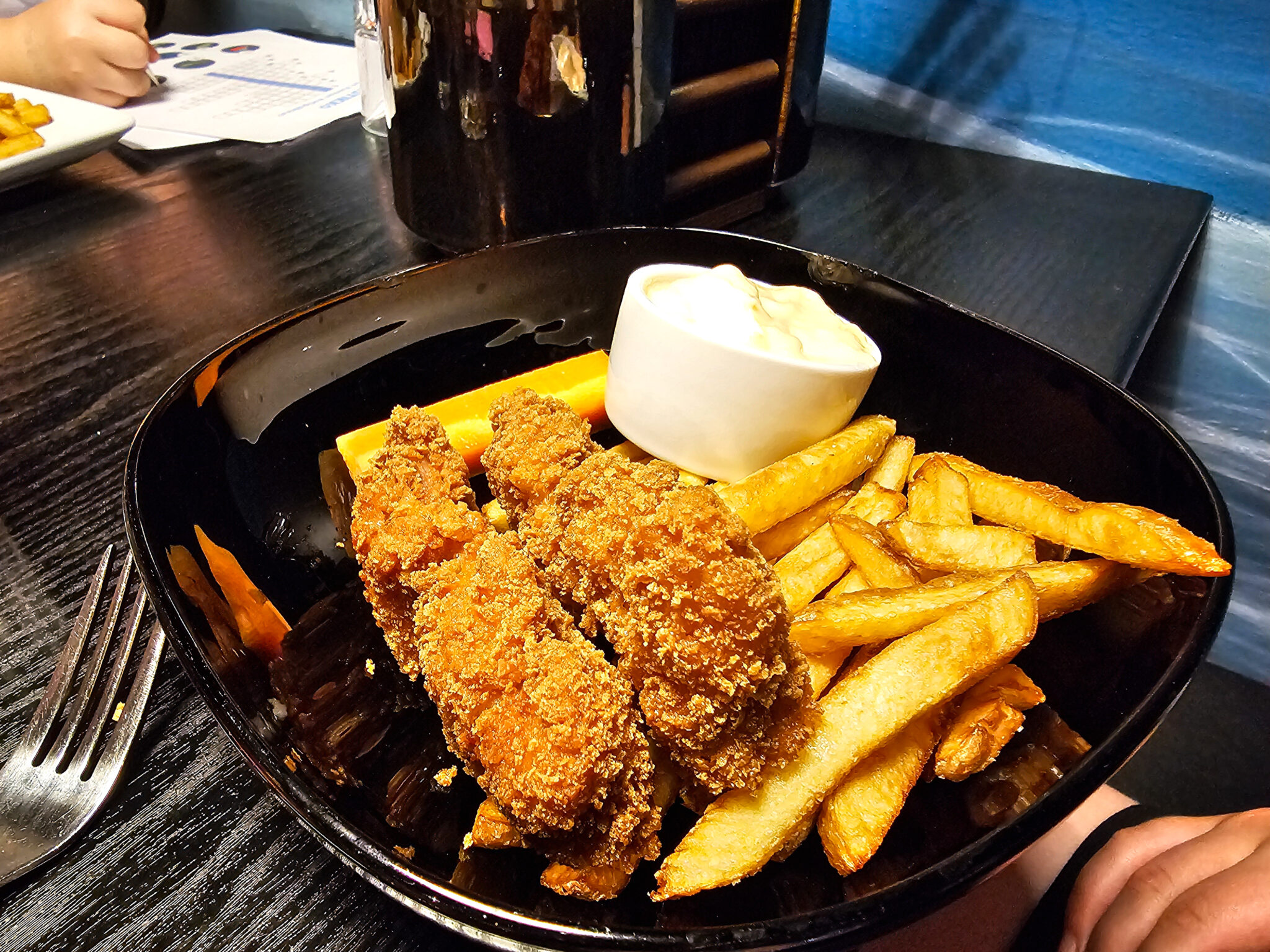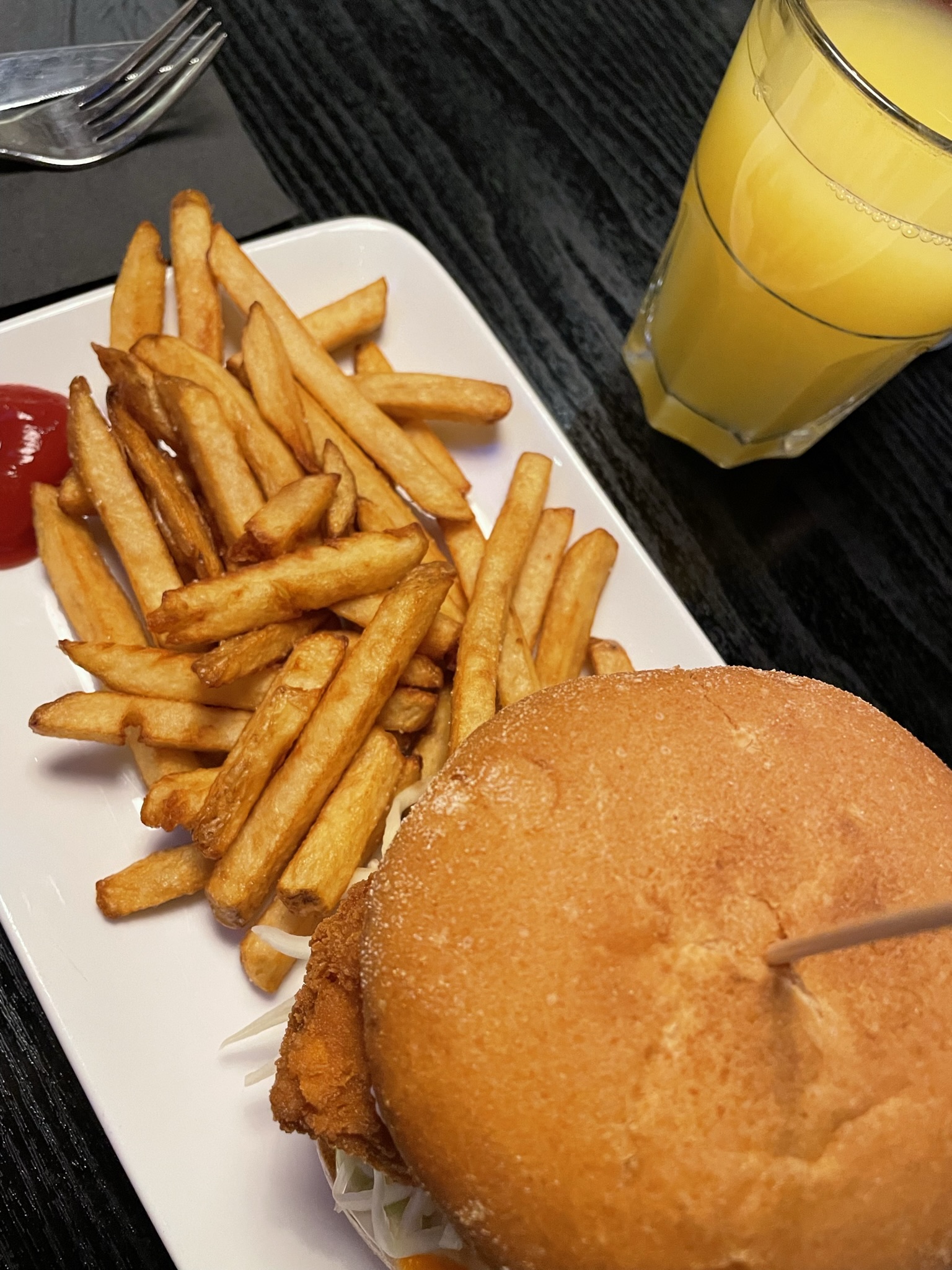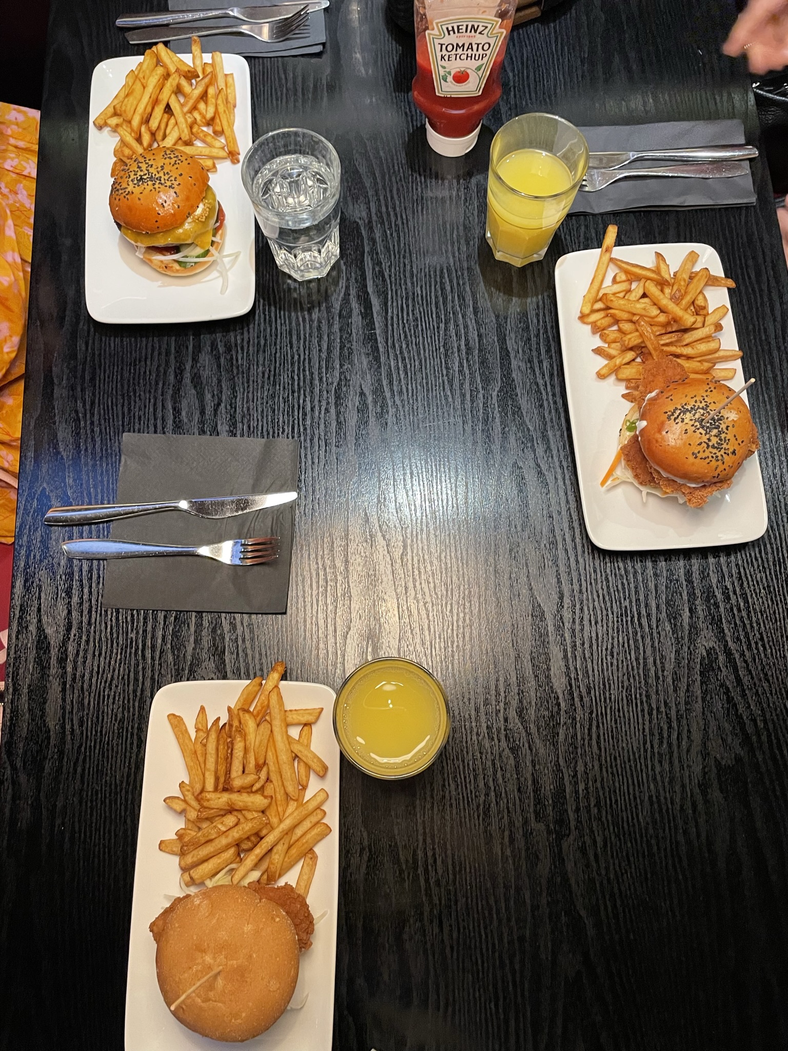 8-vuotias tilasi gluteenittoman burgerin, josta jaksoi syödä puolet ja 12-vuotias tilasi kanakorin. Kanakorin kanat oli samalla tavalla leivitetty kuin kanahampurilaisen pihvi ja oli kuulemma superhyviä.
