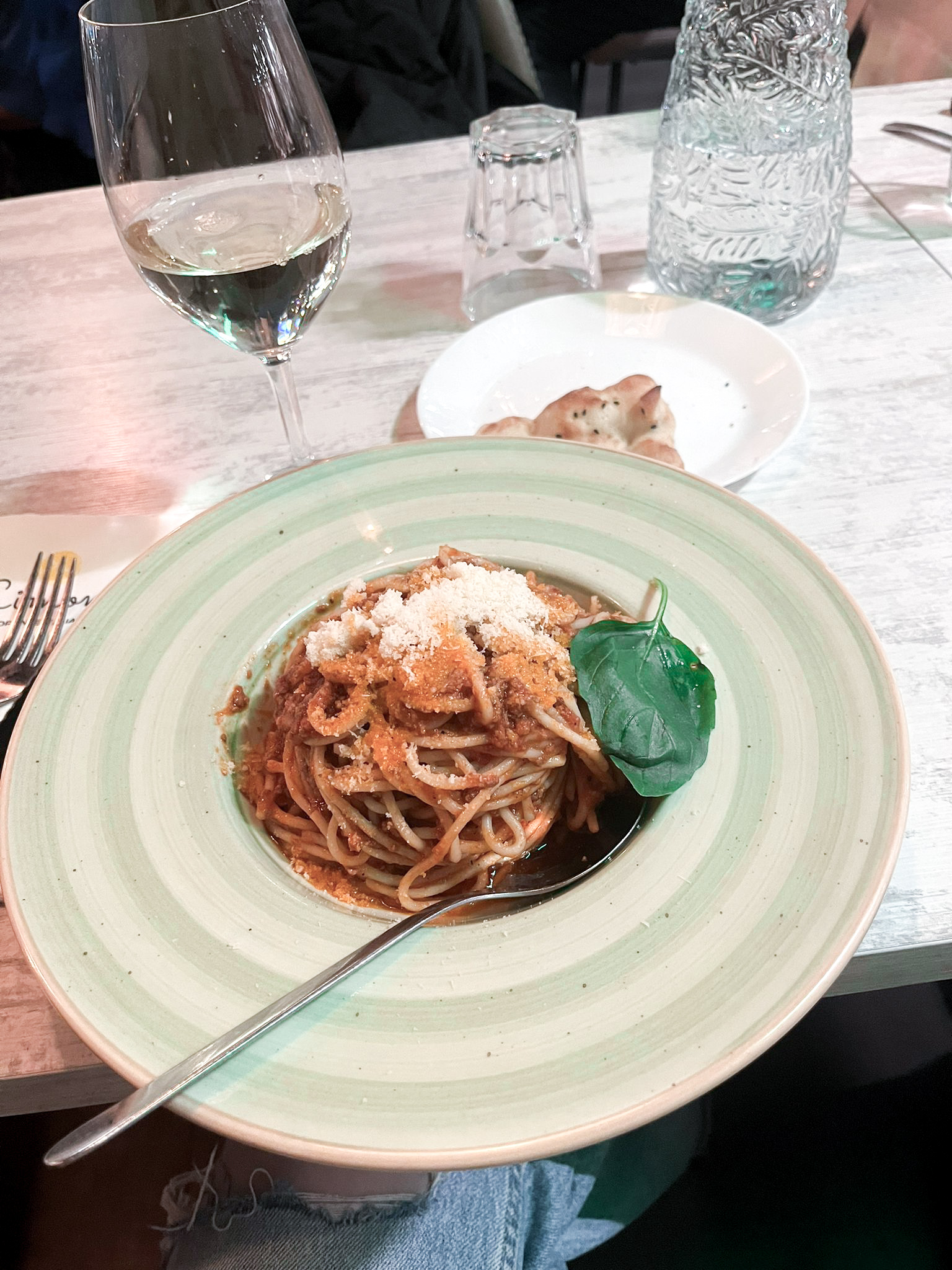 Serkkuni tilasi Spaghetti Alla Carbonaran eli pastan, jossa oli ”Guanciale” ilmakuivattua porsaan poskea, kevyt kermaa, kananmunaa ja parmesaani juustoa. Esikoinen taas tilasi Spaghetti Al Ragu-pastan, jossa oli naudan jauhelihakastike ja parmesaani juustoa. Pastat olivat ihan järjettömän isoja ja esikoinen ei jaksanutkaan syödä annostaan ihan loppuun asti.