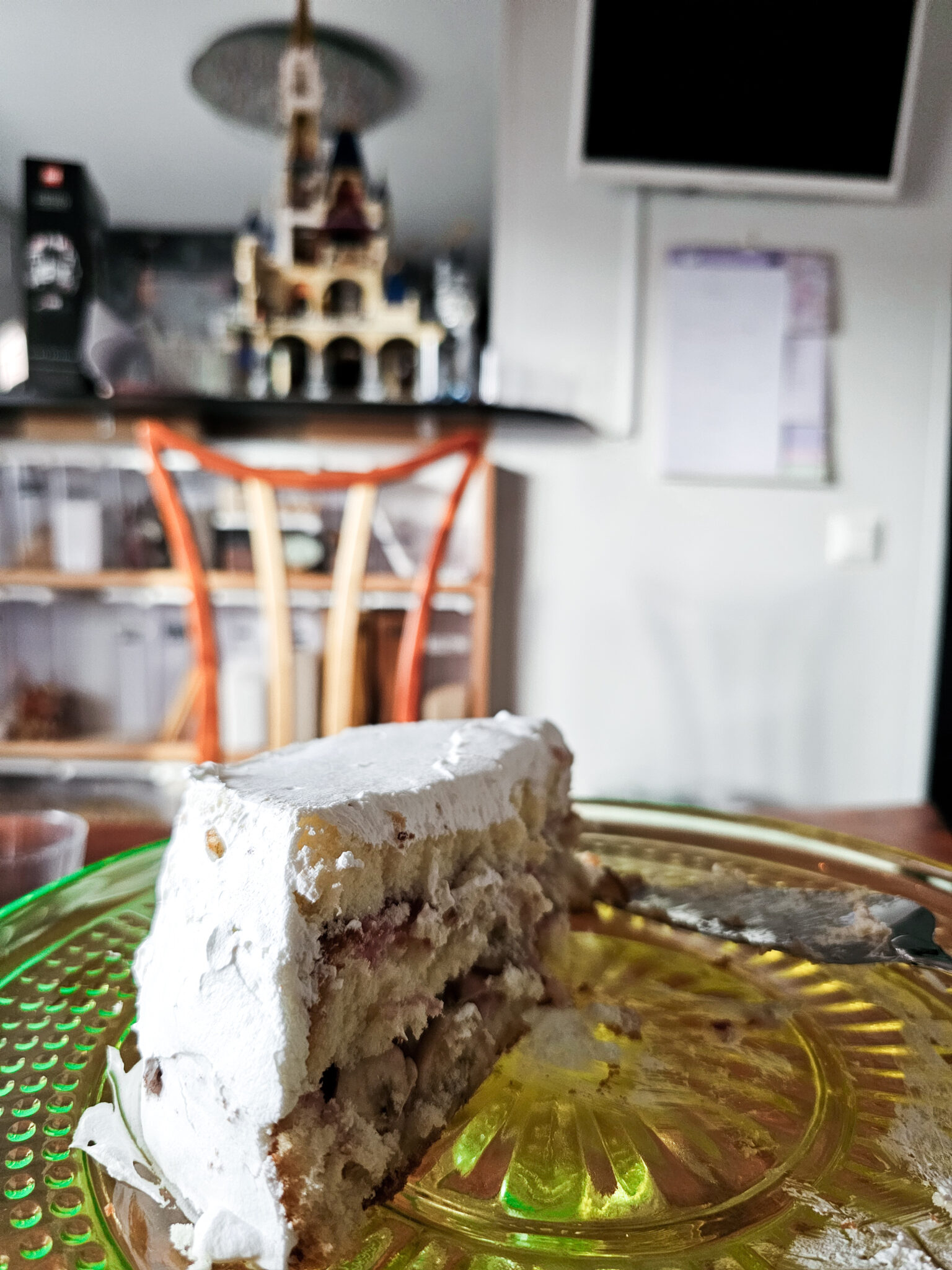 Laitoin Pahattaren kiipeämään ylös uudempaa linnaa ja se oli sinne just passelin kokoinen. Mulla oli alunperin ajatus rakentaa linnan luokse paraati, jollaisia Disneylandissa on, koska meidän siellä ollessa (13 vuotta sitten) paraatissa oli tulta syöksevä Pahatar.