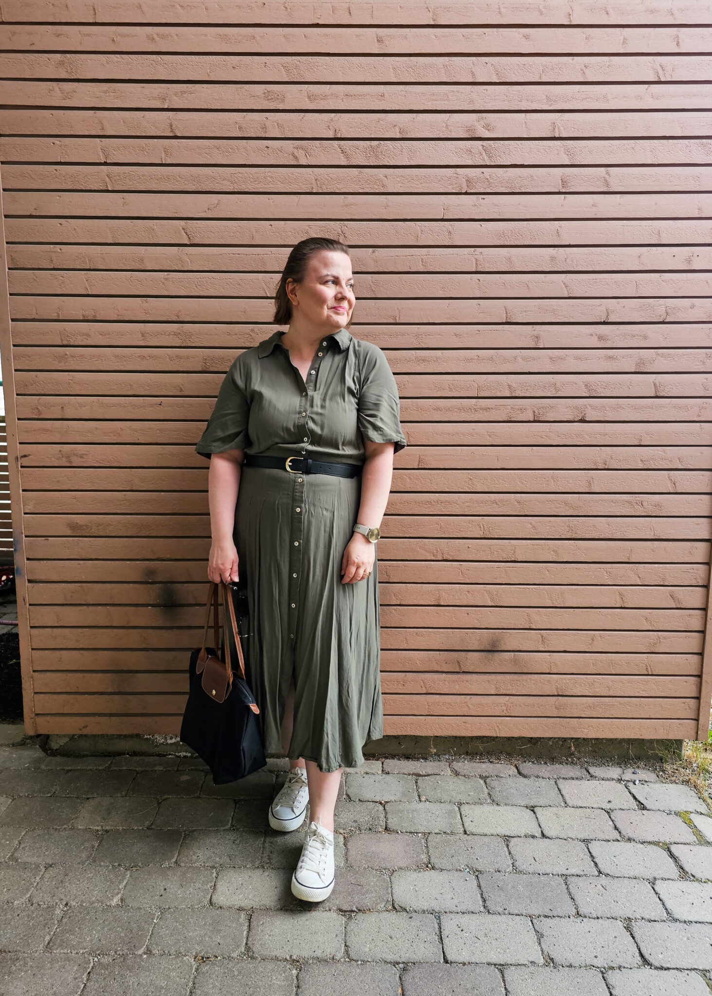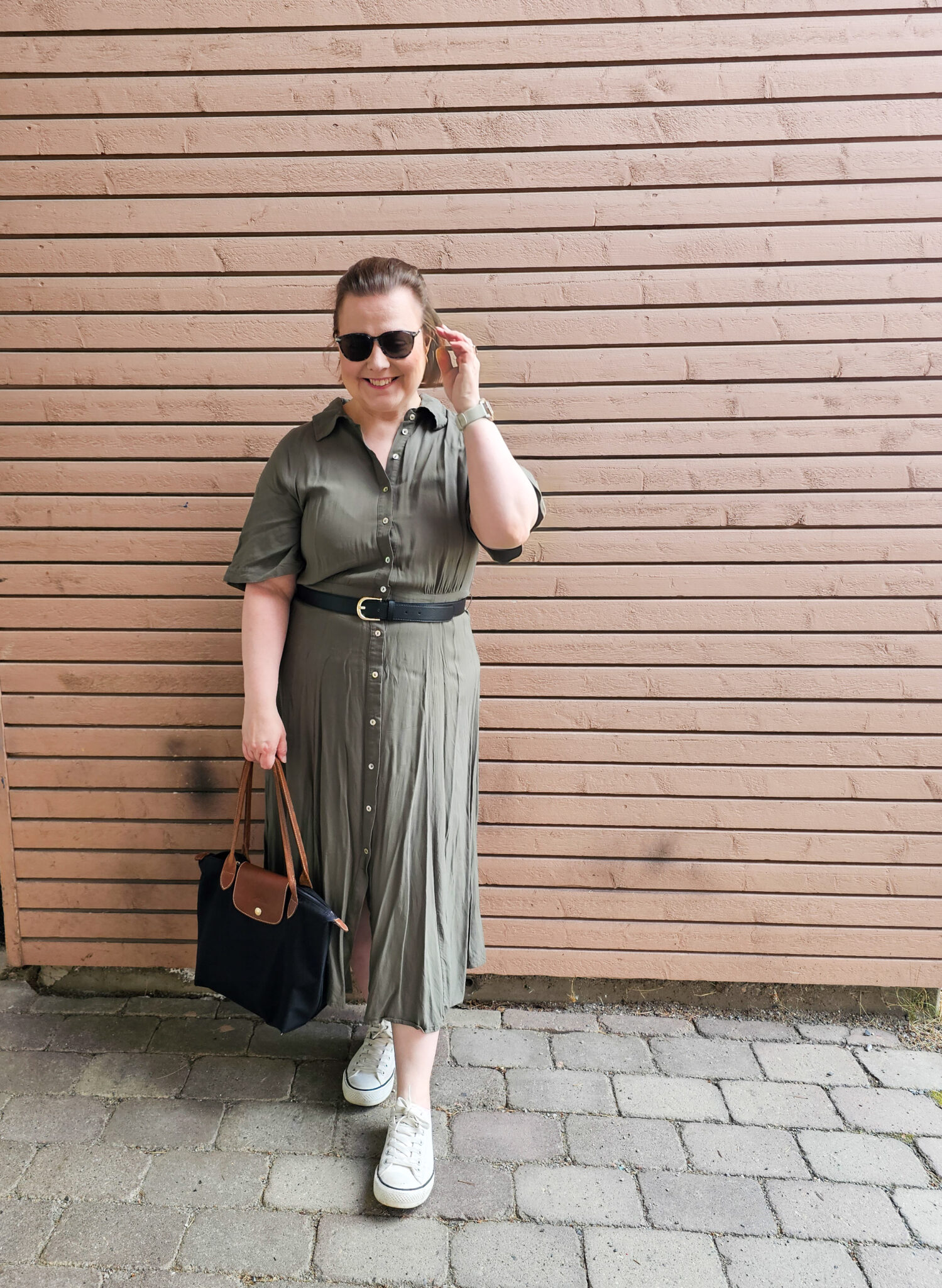 Käytin lapsia koulutarvikeostoksilla ennen koulun alkua ja pyysin 8-vuotiasta nappaamaan mun asusta pari kuvaa, kun kerrankin oli kiva asu päällä. Koko kesänä ei nimittäin oikein tehnyt mieli panostaa pukeutumiseen, kun oli niin hitsin kuuma! Tämä oli täydellinen asu koulutarvikeostoksille, koska mulla oli tässä tosi kiva olla ja mun mielestä asu oli myös kivan näköinen.