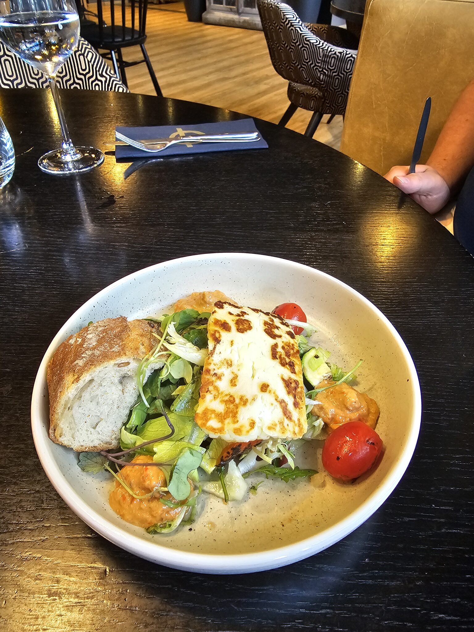 paahdettua halloumia ja grillikasvissalaattia