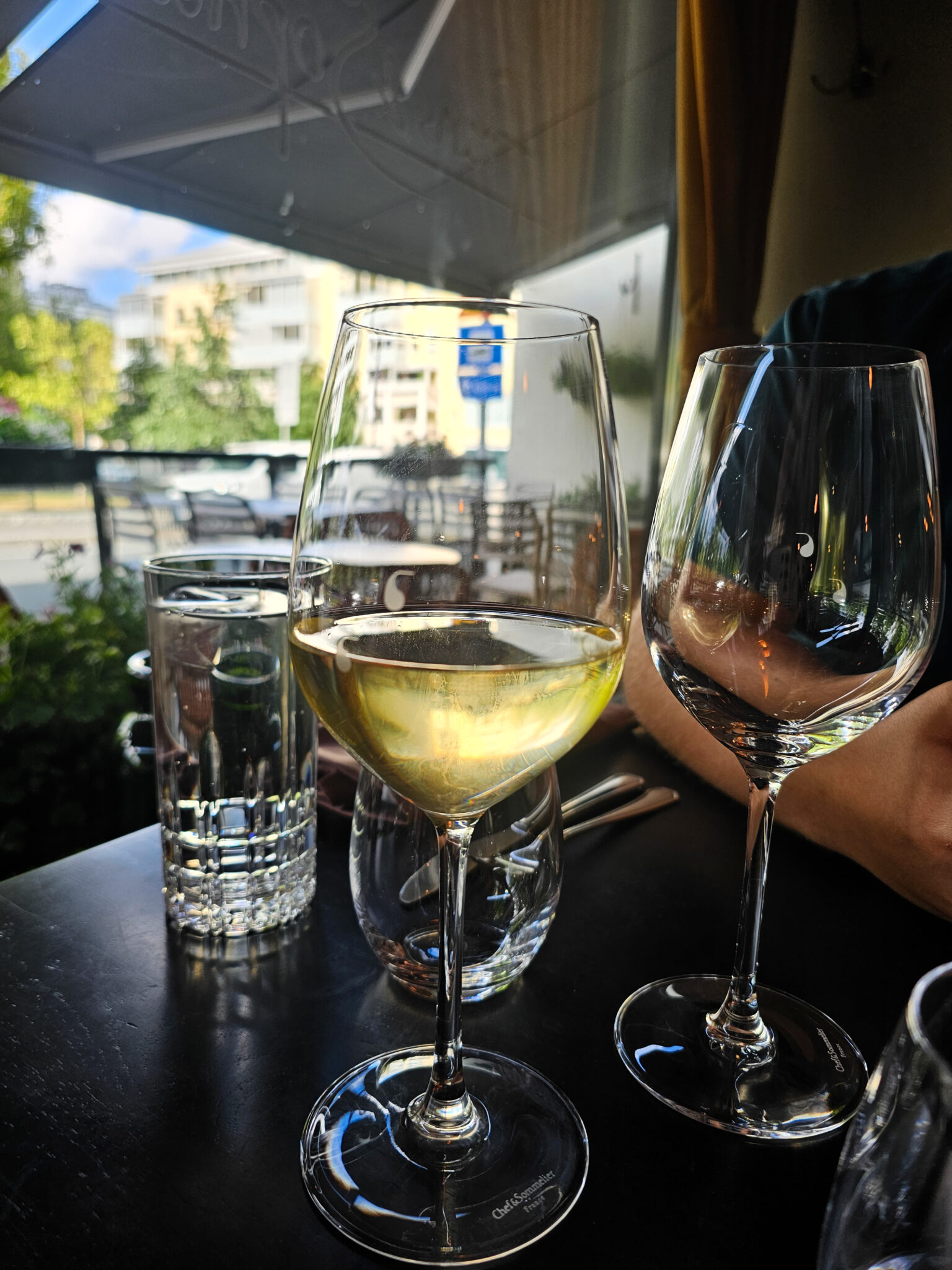 Meidän koko ravintolaillalliselle tuli s-etukortin jälkeen hinnaksi 104€. Mä tilasin ruoan kanssa 12cl lasillisen viiniä ja Jani joi vichyä eli myös ne oli laskettu tuohon hintaan.