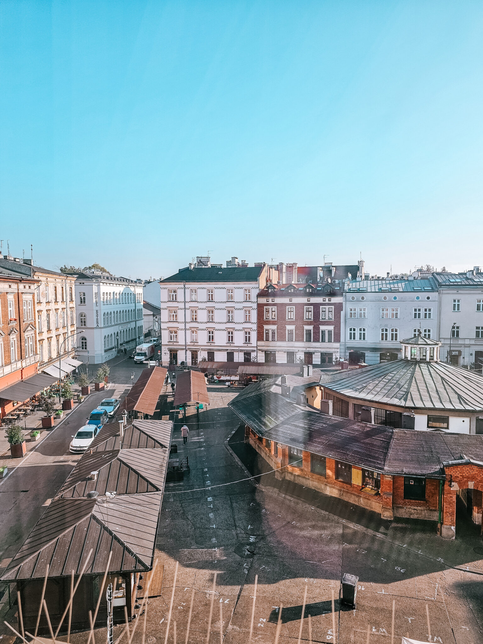 Lokakuulle mä varasin tosiaan tosi söpön asunnon, jossa oli nukkumapaikat neljälle. Asunto sijaitsi Plac Nowyn (New Square) vieressä, siis tää tori näkyi suoraan meidän makuuhuoneen ikkunasta. Torin keskellä oli pyöreä rakennus, jossa oli pieniä luukkuja ja niistä myytiin perinteistä krakovalaista ruokaa, zapiekankaa eli sellaista pitkää, täytettyä leipää.