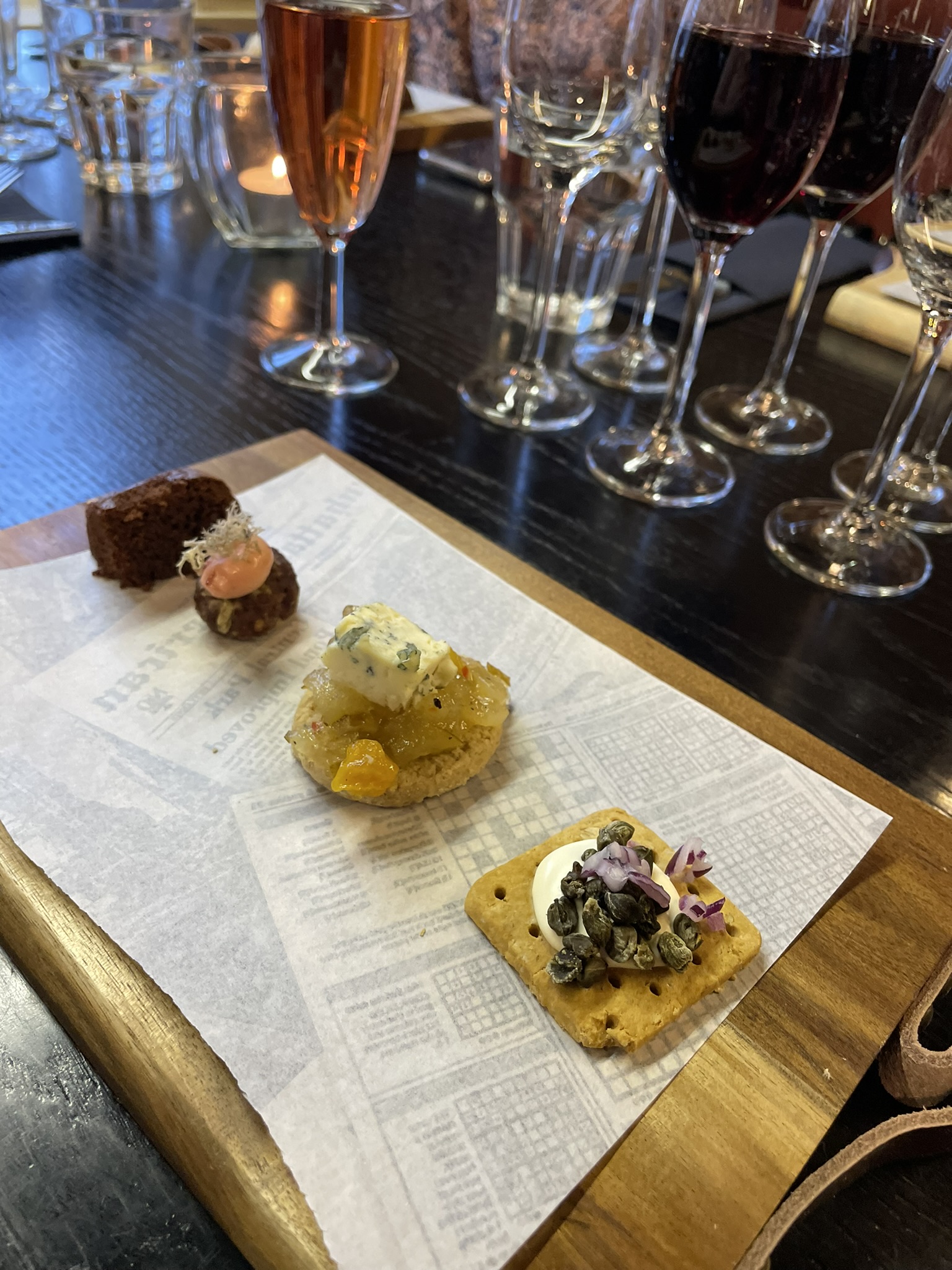 Mä en voi syödä gluteenia tai kalaa ja äyriäisiä, joten mulla oli näissä leivän ja piparkakun tilalla gluteenittomat keksit. Sama suklaakakku kävi myös minulle. Mäti oli vaihdettu kapriksiin ja se oli mulle kokonaan uusi makuelämys. Oon ostanut kapriksia tämän jälkeen myös kotiin monesti.