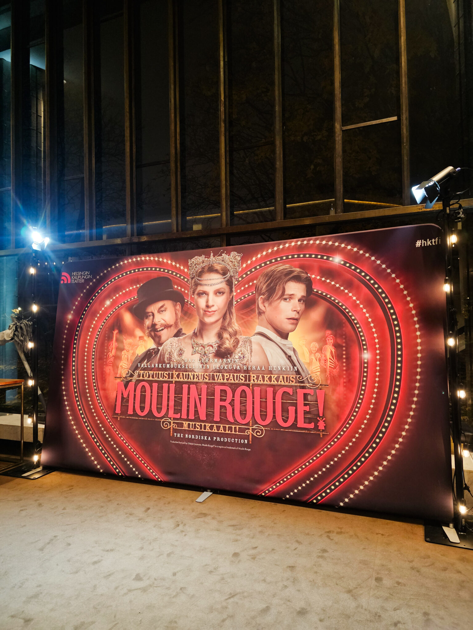 Ekana iltana me päästiin katsomaan Helsingin kaupunginteatterille Moulin Rouge-musikaali, josta oon kuullut pelkästään hyvää. Eikä todellakaan turhaan ole kehuttu tätä! Musikaali oli niin upeasti toteutettu niin puvustuksen, lavastuksen kuin roolituksenkin suhteen, että ansaitsee ihan jokaisen kehun, jonka saa osakseen. En myöskään ihmettele yhtään, että tämän esittämistä jatkettiin vielä tälle syksylle!