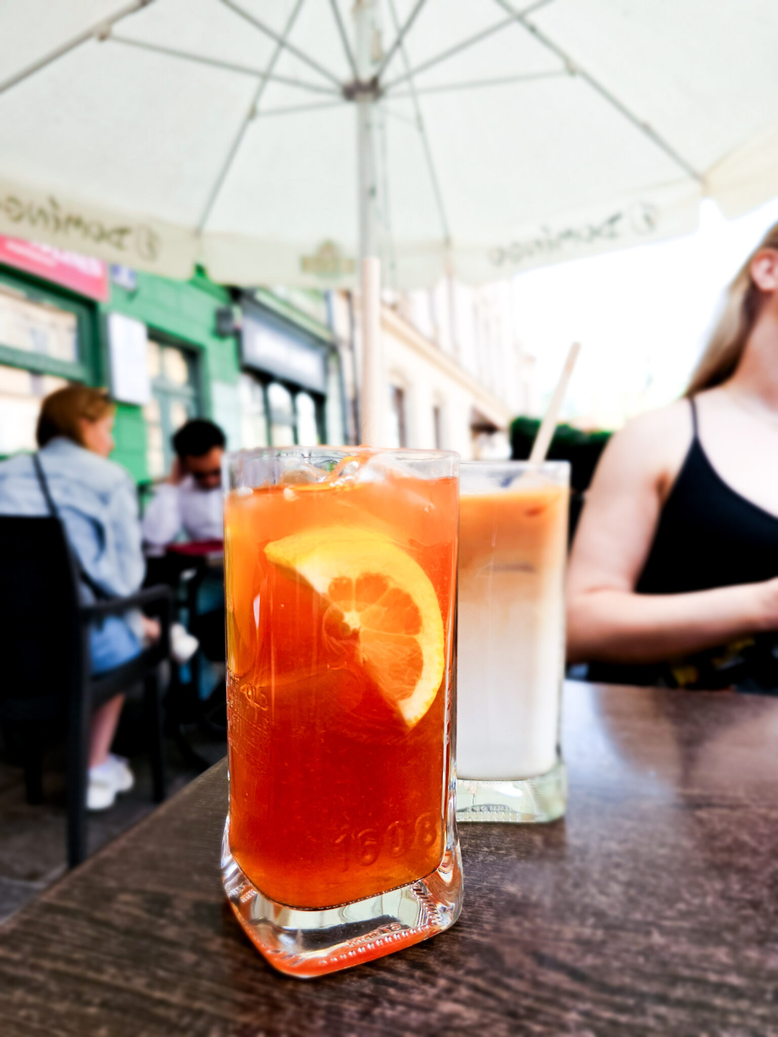 Drinkit meiltä neljältä maksoi 32,34€ eli melkein saman verran kuin aamun aamiainen (osa taisi kyllä tilata kahteen otteeseen). Ravintola olisi ollut tosi kivan näköinen sisältäkin, mutta oli lämmin ilta ja istuskeltiin terassilla. Haettiin vielä saman rakennuksen nurkalla olleesta mäkkäristä iltapalaa ennen paluuta airbnblle.