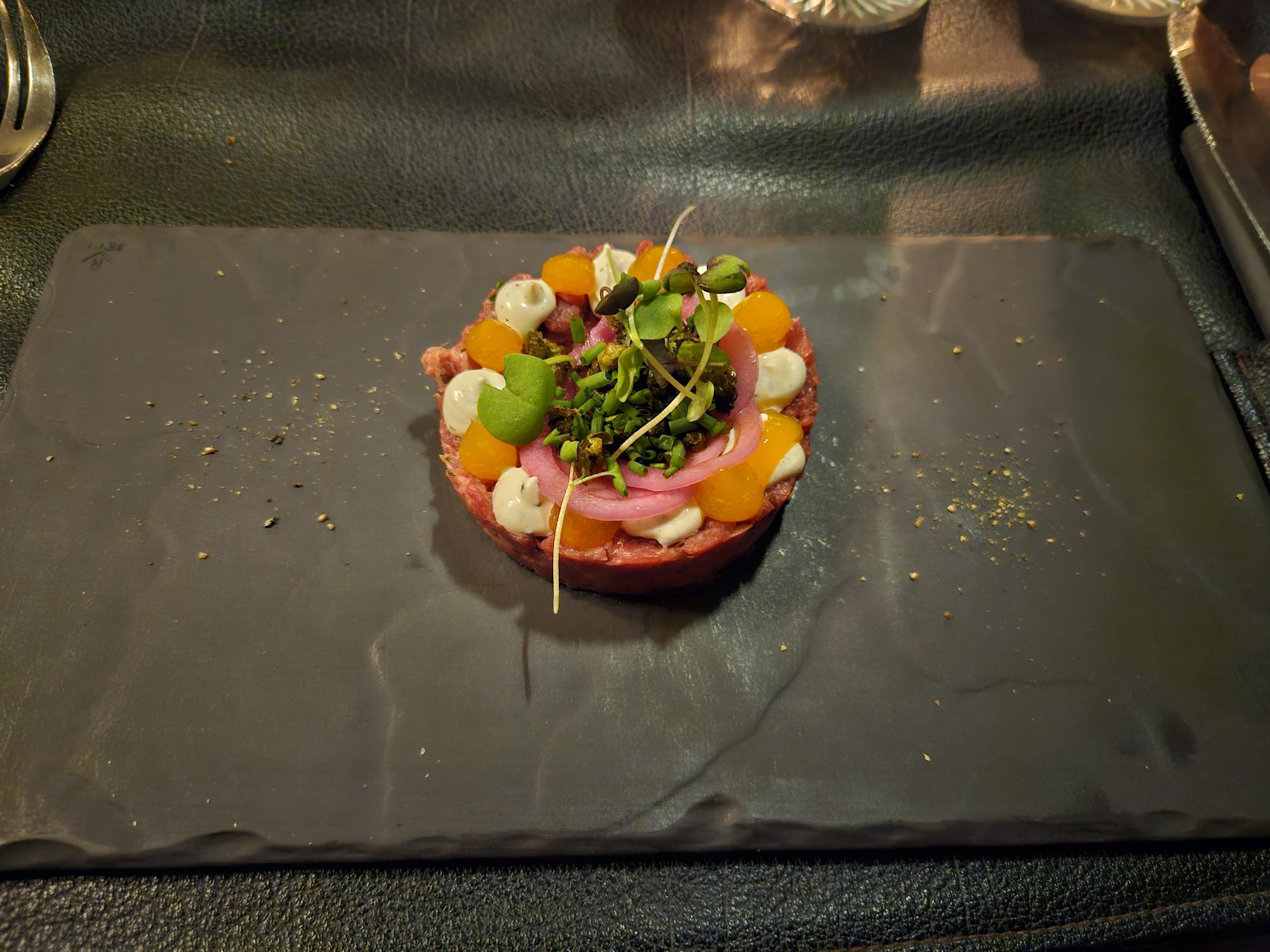 Alkupalaksi mä tilasin spicy avokado tartarin ja mies tilasi beef tartarin. Miehen annos oli tartar Black Angus -härän sisäfileestä, tryffelikreemiä ja keltuaista. Mulle tuo avokadotartar kävi suoraan muuttamatta annosta. Molemmat tykättiin näistä tosi paljon!