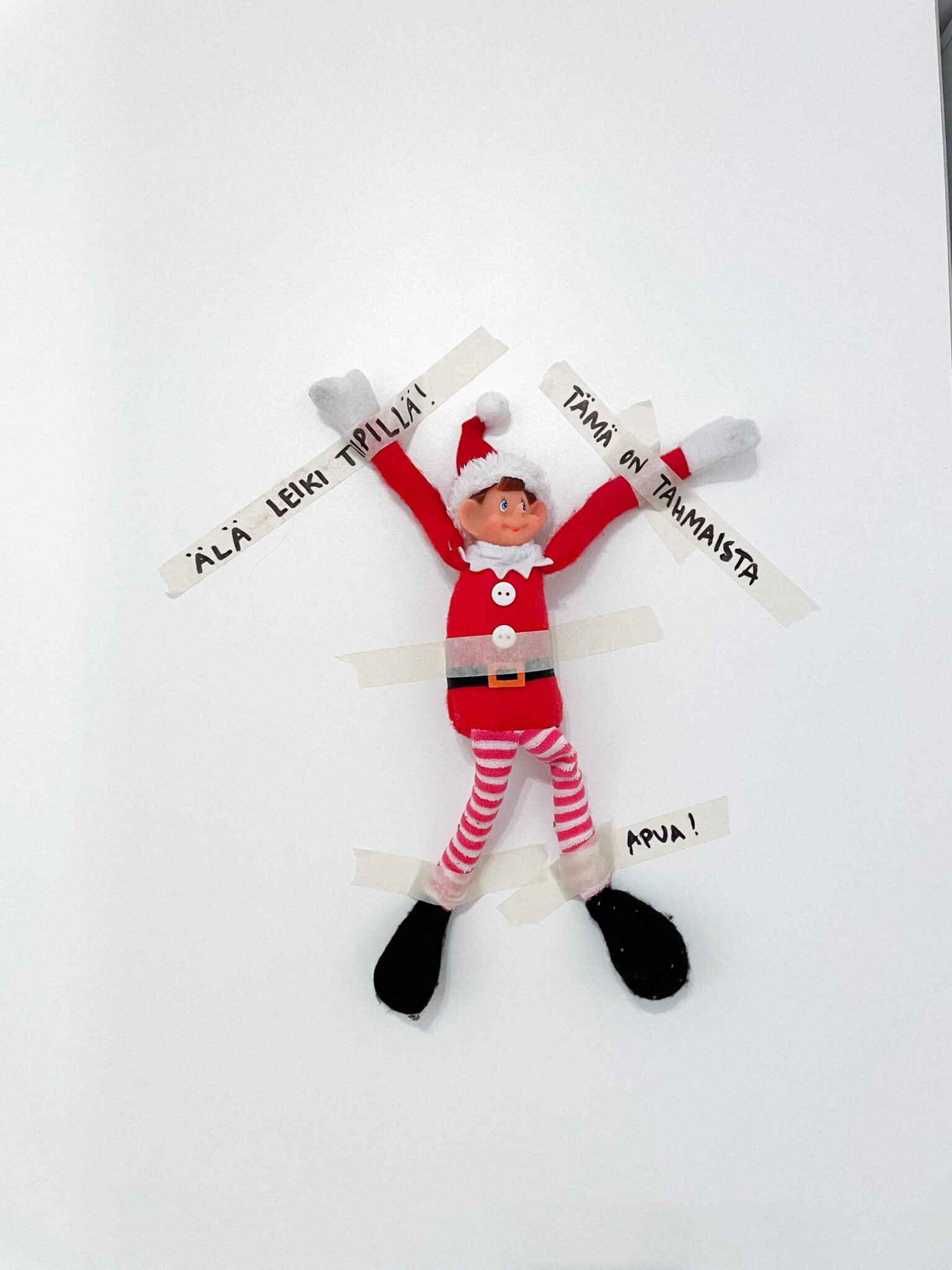 Jos kaipaat lisää ideoita, Pinterest on niitä pullollaan. Ne löytyvät hakusanoilla ”elf on the shelf” ja itse kirjoitan perään usein vielä sanan ideas. Tonttuja saa ainakin Tokmannilta ja Amazonista. Itse haluaisin uusia tontun sellaiseen, jolla olisi rautalangat sekä käsissä että jaloissa, koska sen saisi helpommin laitettua aina roikkumaan johonkin.