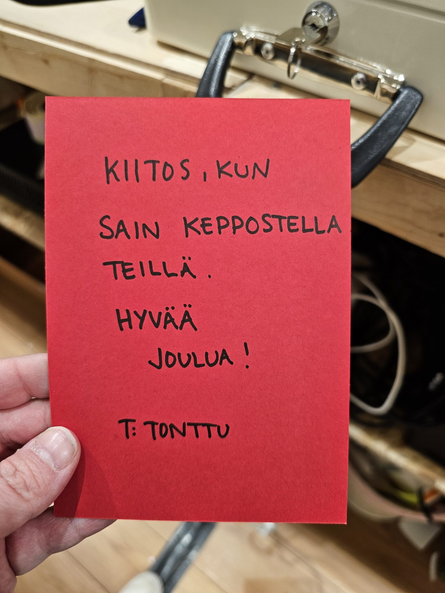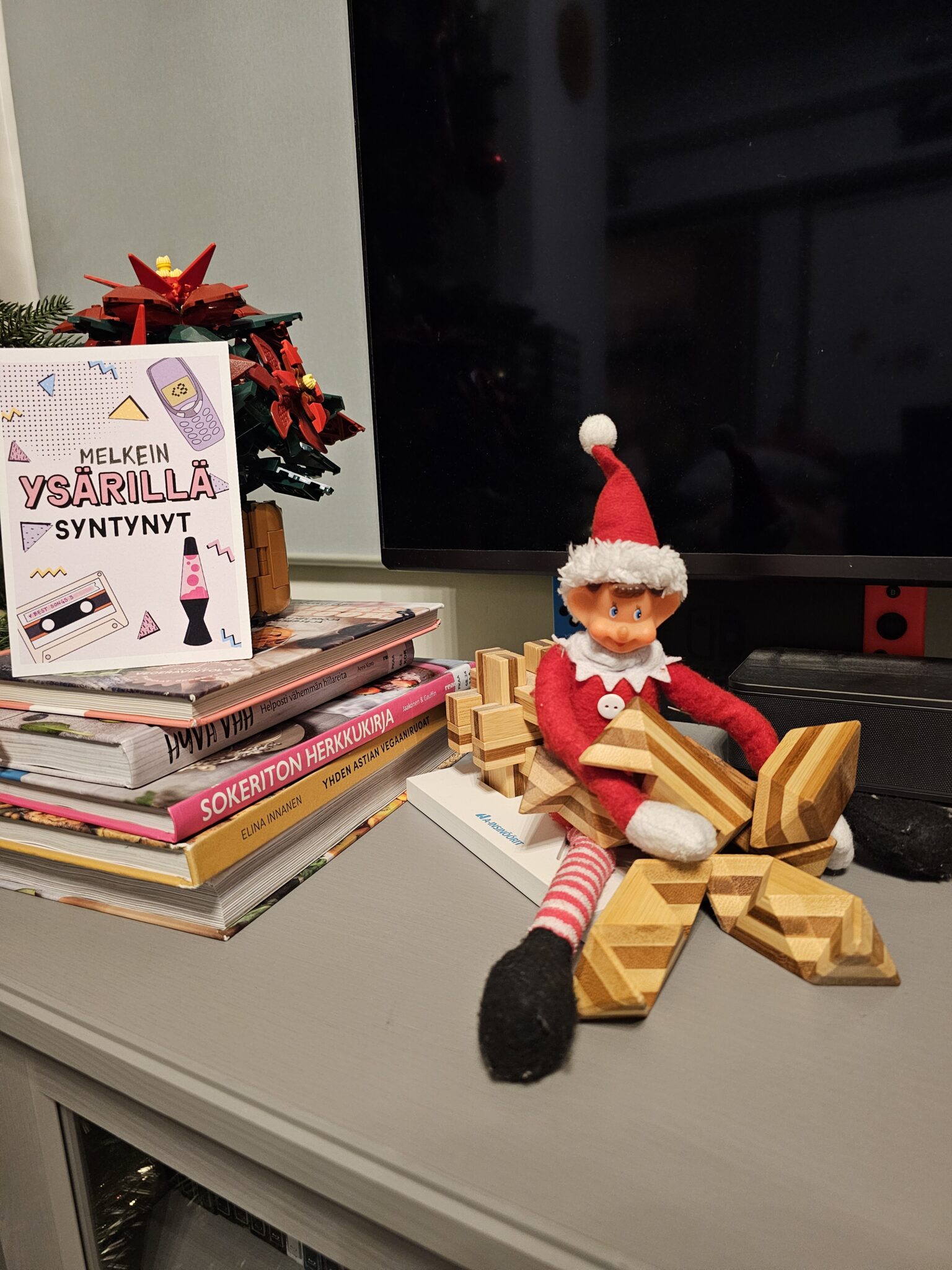 Mä ostin joskus viitisen vuotta sitten meille kujeilevan tontun ja siitä on tullut osa meidän joulukuuta niin vahvasti, että meidän nuorin (nykyään 9-vuotias) kyselee jo hyvissä ajoin marraskuussa milloin tonttu tulee taas kujeilemaan.