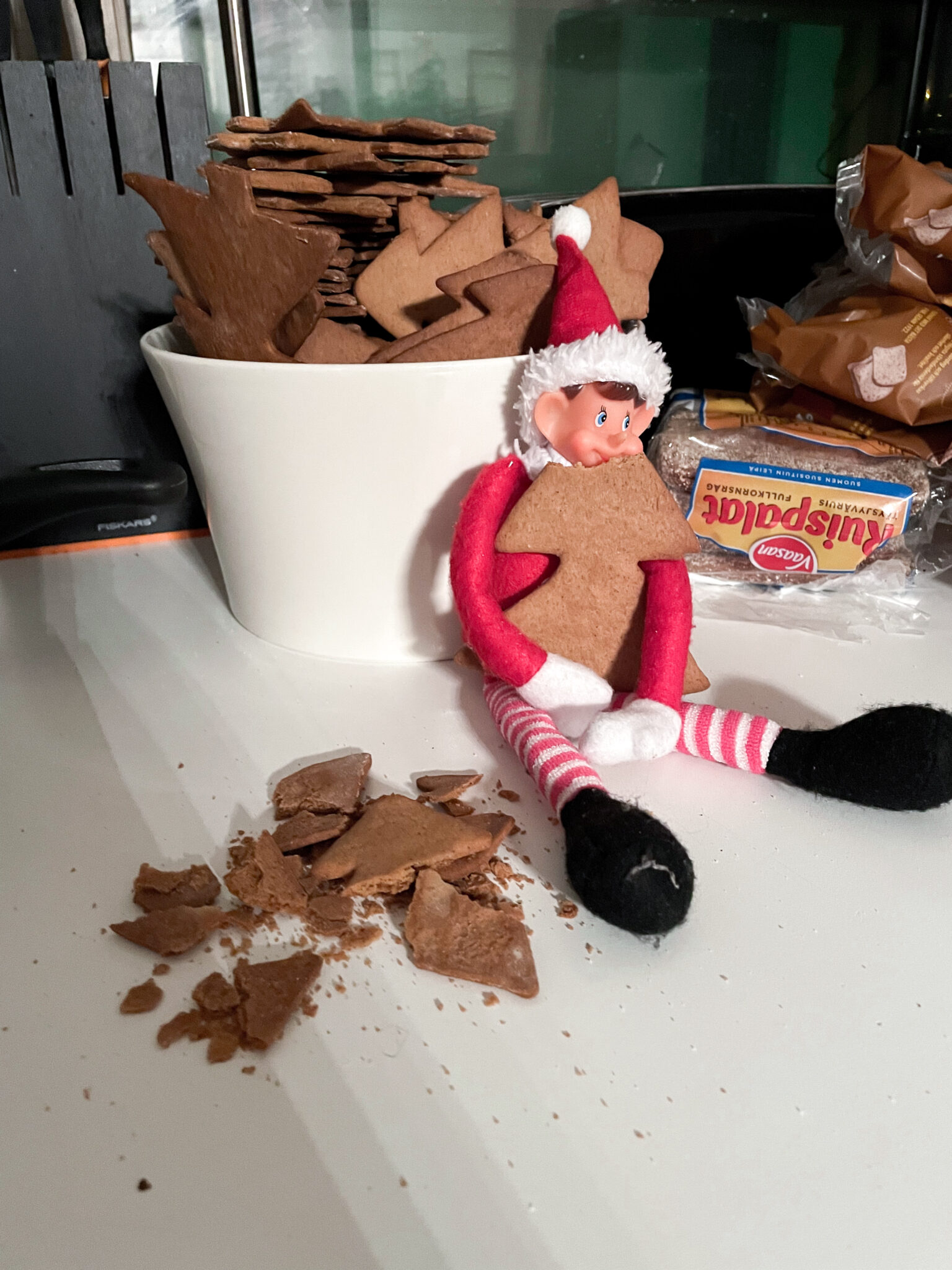 7. Jos pipareita on jo leivottu, murustele muutama pipari ja laita tonttu syömään niitä.