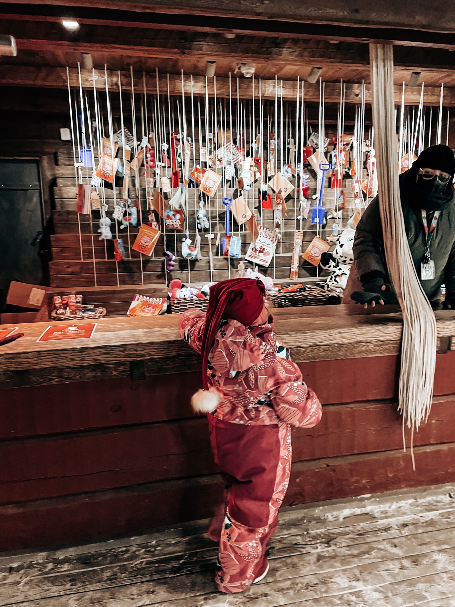 Lisäksi Koiramäen joulussa voi tavata Joulupukin, jolle voi kertoa halutessaan joulutoiveensa. Meidän kuopus ei oikein neljä vuotta sitten vielä halunnut mennä lähellekään Joulupukkia, joten käytiin narunvedossa sillä aikaa, kun serkkupoika toimitti joulutoiveensa.
