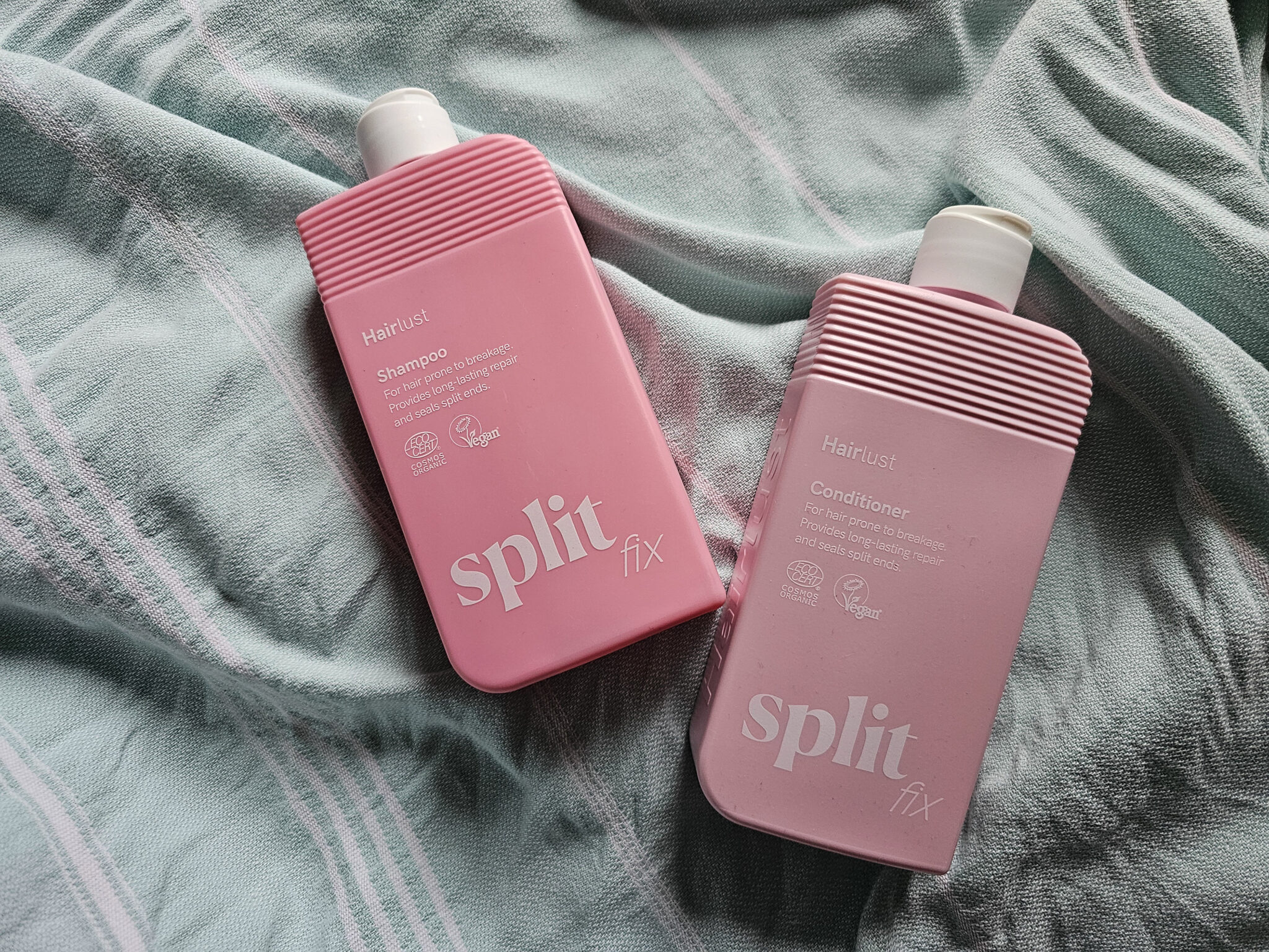 Oon kuivan päänahan lisäksi kärsinyt nyt todella pahasti katkeilevista hiuksista ja siksi tilasin kokeiluun myös *Split Fix Shampoon ja *Split Fix Conditioner-hoitoaineen. Nämäkin oli myynnissä *Split Fix Duo-pakettina, joka oli edullisempi kuin ostaa kaksi tuotetta erikseen.