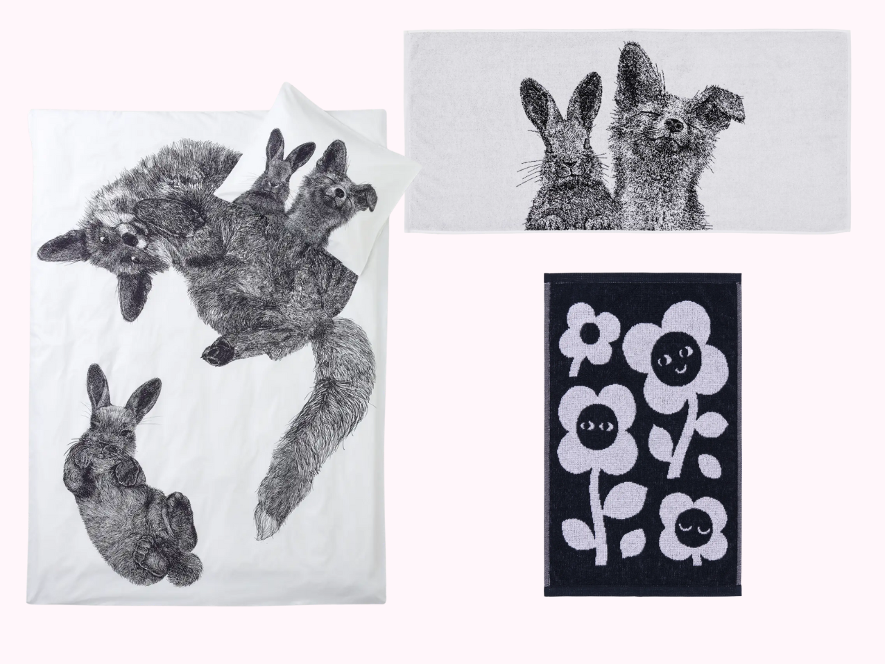 Lisäksi mustavalkoinen Pesue-sarja kiehtoo teiniä enkä ihmettele yhtään. Tästä sarjasta olisi myös *jättipyyhe, johon voisi kietoutua ihanasti.