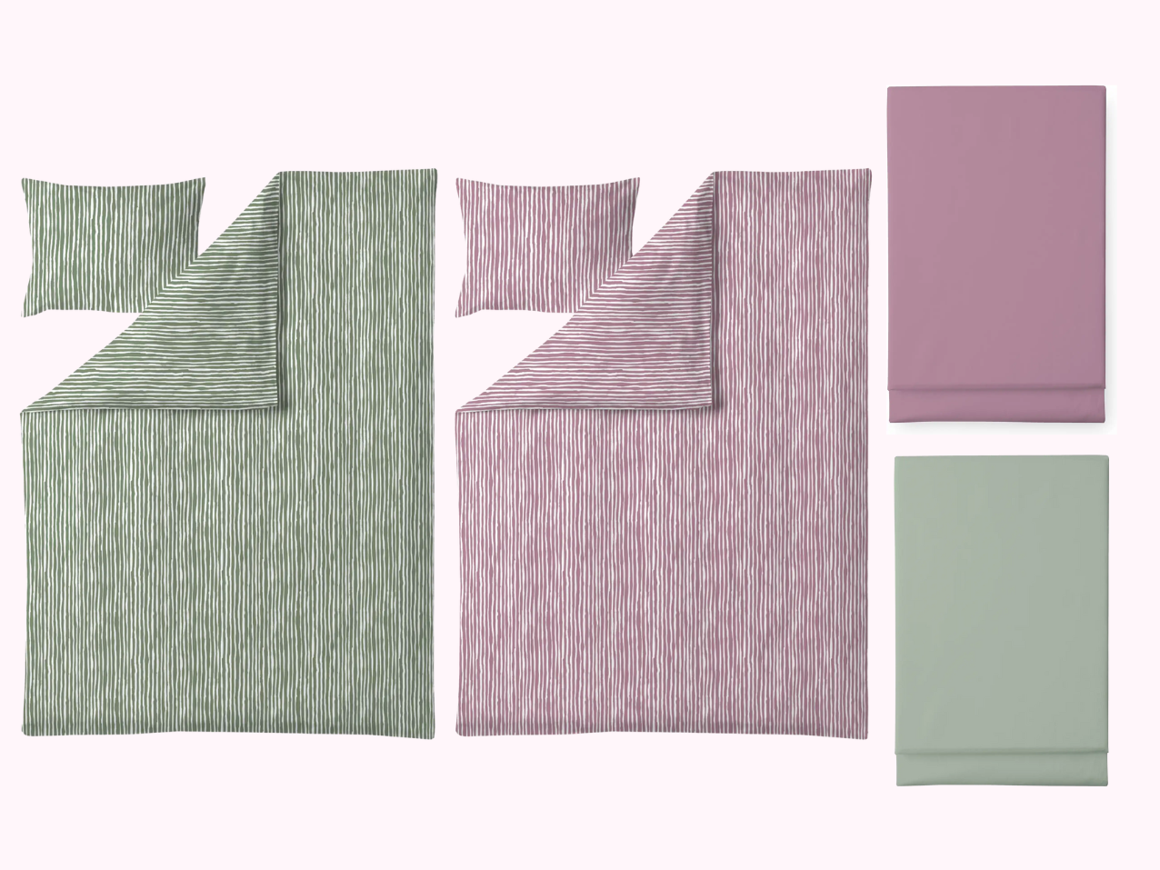 *Tiuhta pussilakanasetti vihreä | *Tiuhta pussilakanasetti malva | *Aluslakana tummanroosa | *Aluslakana